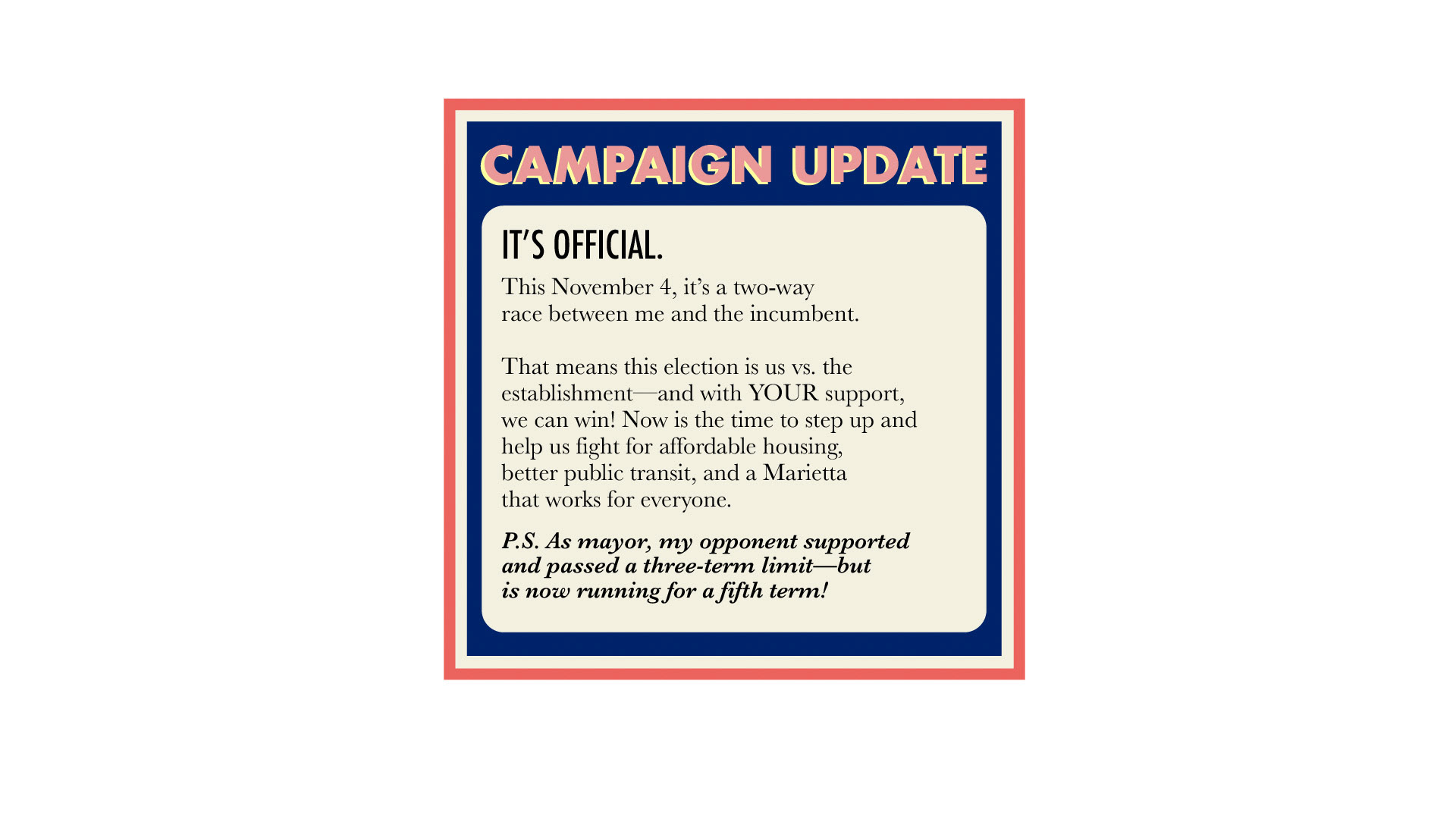 I helped a resident of my hometown run for mayor against a 16-year incumbent.